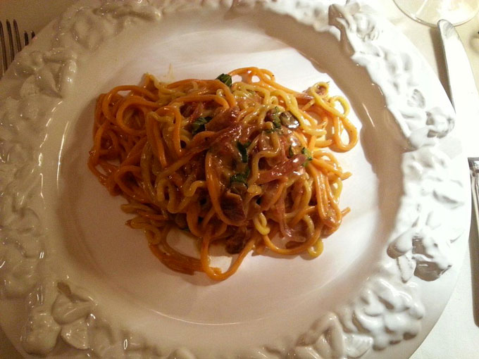 The flavors of my cuisine are enhanced by creating table decor inspired by the Tuscan region. Eating crostini served on a Tuscany-shaped plate, or macaroni bread with Cinta Senese ragu on a Tuscan tegolo is sure to be aunique experience.